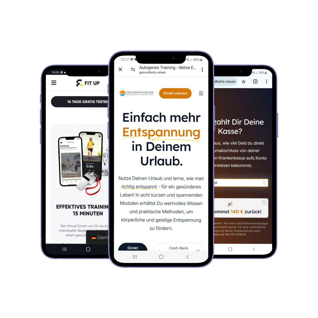 Mit unserem zertifizierten Gesundheitsprogramm registrieren wir Ihr Unternehmen bei allen Krankenkassen. Das bedeutet: Über 65 Millionen gesetzlich Versicherte haben die Möglichkeit, bei Ihnen Urlaub zu machen, während die Krankenkassen die Kosten bis zu 140 Euro pro Person übernehmen.